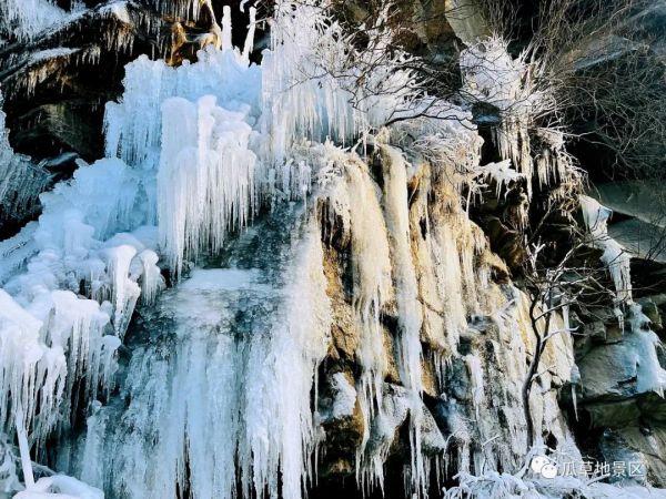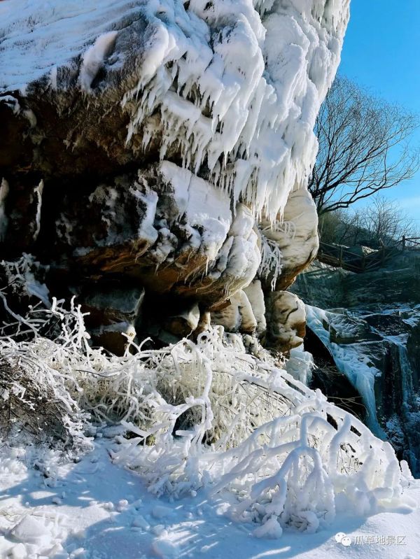 随着落雪临,这里的瀑布成为了晶莹剔透的天然冰瀑群,冰封倒挂,洁白无瑕的冰柱悬挂在巨大的山崖之上,晶莹剔透,形成了一道冬季绝美的景观,置身其间,宛若进入了童话世界。