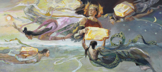 油画 《女娲补天》270cmX120cm