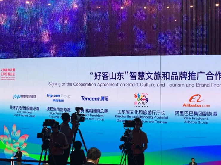 开幕式现场省文化和旅游厅与腾讯、阿里巴巴、携程、景域驴妈妈等战略合作伙伴,签订“好客山东”智慧文旅和品牌推广战略合作协议。