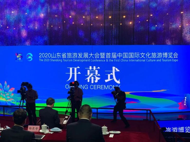 9月16日下午,2020山东省旅游发展大会暨首届中国国际文化旅游博览会在济南奥体中心东荷体育馆隆重开幕。大会以“文旅融合发展,乐享好客山东”为主题,来自38个国家和地区的友好宾朋,跨越空间阻隔,相约线上交流,共同推动山东文化和旅游业发展谱写新的篇章。