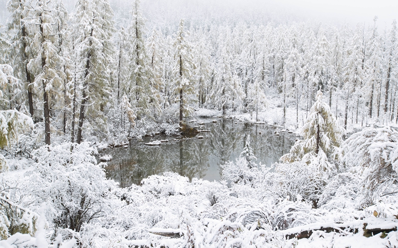 这是10月21日在玛嘉沟拍摄的银装素裹的五色海。