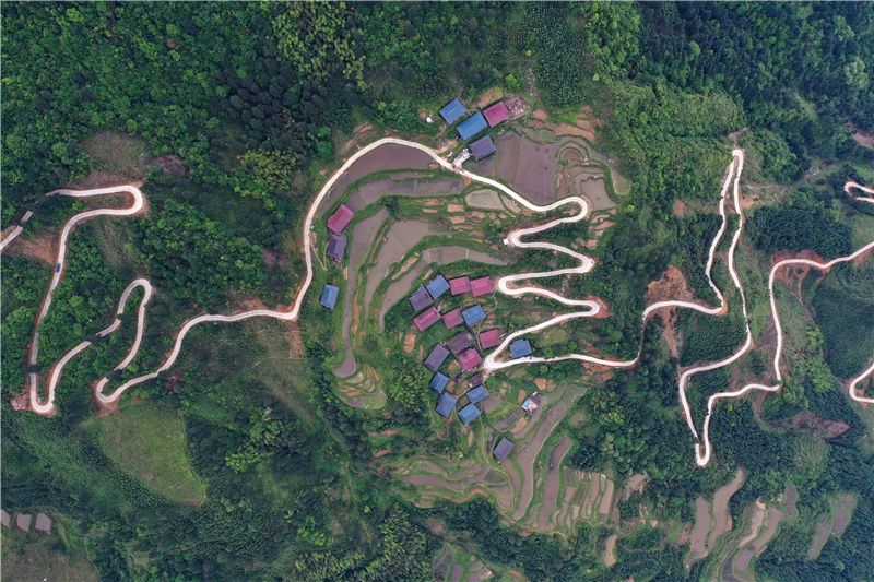 这是广西融水苗族自治县同练瑶族乡大坪村下大弄屯的通屯公路(5月12日摄,无人机照片)。