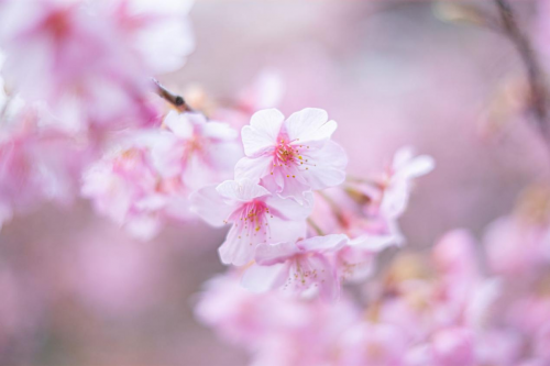 春季万物复苏,早春的樱花纷纷扬扬飘舞洒落,为这春寒料峭的大地带来一抹抹粉色装点。河津樱自2月上旬起开始开花,与染井吉野樱相比,河津早樱浓郁的粉色是其一大特征。河津樱自开花始经过一个月便可全部盛开,因此可长时间欣赏樱花的绚烂花景。