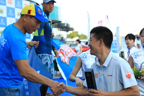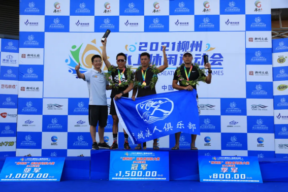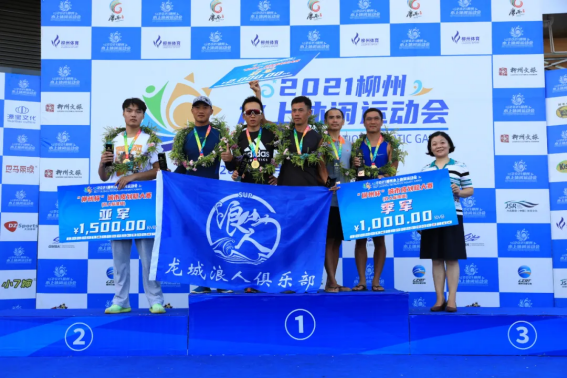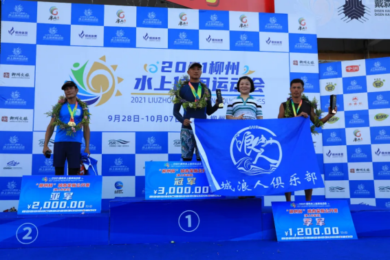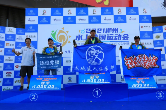 来自柳州龙城浪人队的韦京命夺得桨板标准组冠军;