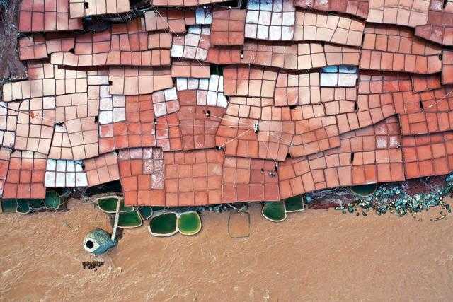 位于西藏昌都市芒康县澜沧江畔的古盐田,至今仍保持原始的手工晒盐方式。当地居民从澜沧江畔的盐井、盐池中取出卤水倒入盐田,经阳光蒸晒、风干,结晶成盐。从空中俯瞰,盐田错落有致,蔚为壮观。新华社记者 詹彦 摄影报道