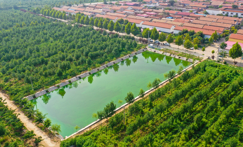 河北大城县南赵扶镇中赵扶村原来的“臭水沟”变为“观景池”(8月9日摄,无人机照片)。