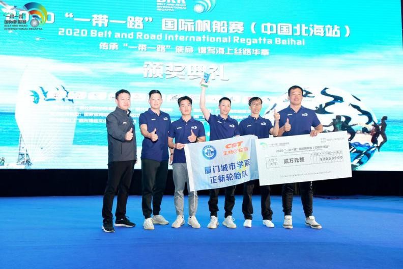 2020“一带一路”国际帆船赛(中国北海站)J80级别的比赛于11月15日结束,青岛和气人家帆船队夺得冠军。赛后的颁奖典礼上,
