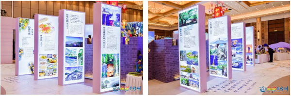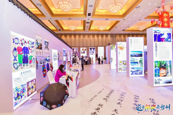整个台州好文旅展馆,以开放时尚动感为设计主基调,现代和传统,诗和远方,大山和大海,动态和静态有机融合,将台州的大美风光、人文风情尽收眼底。台州好文旅展馆全方位展示台州的风景名胜、人文风情、美景美物,营造出“游园、赏景、识城”的感官效果,呈现了大美台州的卓越风姿独特魅力。好非遗、好文创与现场神秀的风光融为一体,配以传统器乐表演,高雅脱俗。
