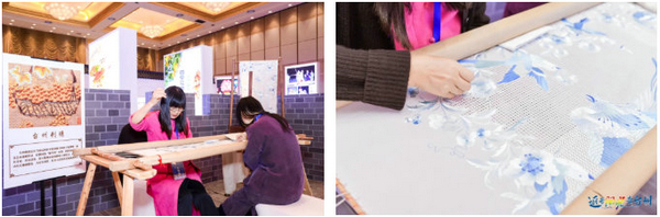 台州拥有深厚的文化底蕴,非遗项目不胜枚举,国遗15项,省遗106项,市遗341项,今天代表台州到上海展示展出的有国家级非遗仙居花灯、黄岩翻簧竹雕,省级非遗台州刺绣、“一根藤”雕刻、台州玻璃雕刻、温岭剪纸、玉环渔民画等,非遗作品纷纷登场亮相,与美景风光融为一体,围绕和合圣地主线,展示台州和合文化。