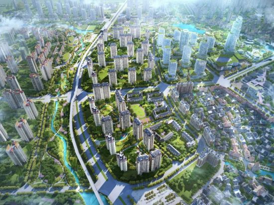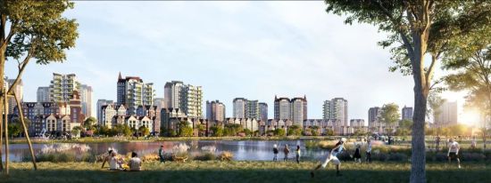 规划区中部连续的公园绿地组成的中央生态景观带,并向周边自然田园过渡渗透,锚固自然生态本底,使城市景观与自然景观融合共生。
