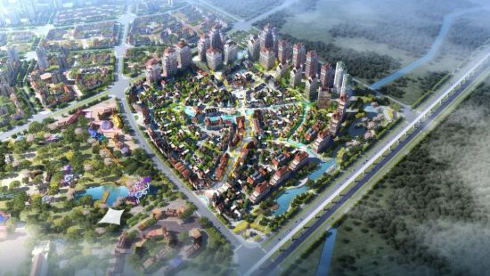 2020年11月17日,伴随着环球融创未来城童话小镇的奠基,从总体规划鸟瞰图中可以看到,除了主题小镇、水域和公园,环球融创未来城还规划了主题MALL、商务中心、星级酒店等业态,提供完善的教育、医疗配套,满足“吃喝玩乐购娱”一站式配置。