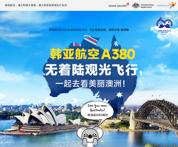摘要:5月,家庭之月,本月韩亚航空将继续开展“A380无着陆旅游飞行”活动,本次的主题目的地是:澳大利亚。