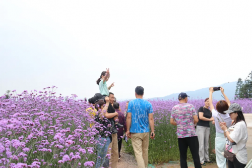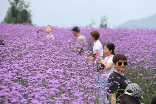 海子山今年的马鞭草开的甚好大片大片的紫色花海营造着浪漫的气息长过人高的马鞭草更显新奇吸引众游客走进花间留下美好瞬间
