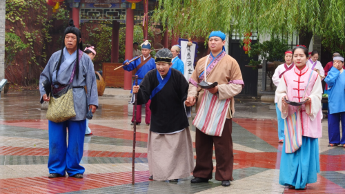 第二天,自驾团巡游至洪洞县。“问我祖先在何处?山西洪洞大槐树。”600多年来,这首童谣口口相传,无数国人从小便记住了“大槐树”。在这里他们穿上明代服装,观看了“祭祖仪式”,了解每到清时节,来自五湖四海的人到洪洞大槐树祭拜,他们通过焚香跪拜,表达对祖先怀念之情。“祭祖仪式”过后观看了实景剧演出《铁锅记》《大槐树移民》《家国情怀》。他们被演员的表演感动,仿佛穿越回那时的“大槐树”下,恋恋不舍与家人道别,体验了离乡之情。在中华姓氏苑,自驾团找寻自己的姓氏始祖、家训,寻根问祖在这座明初移民之根的特殊园子里,饱含着极其深刻的历史意蕴和文化内涵,让他们感受到中华民族生生不息的韧性、意志与力量。