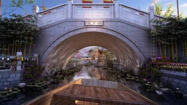 沉浸式游船COS秀,从荆襄码头贯穿整个水系,行进式的带来刘备孙尚香船上婚礼,关羽、诸葛亮豪气亮相,貂蝉、小乔轻歌曼舞,以及郭靖、黄蓉浪漫爱情。