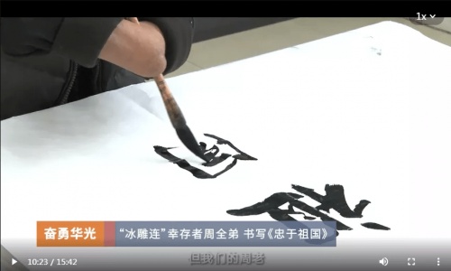 当直播到慰问长津湖战役的亲历者、冰雕连唯一幸存者87岁的周全弟老时,周老用双臂写下书法“追光”二字,并表示自己的新年愿望就是“国富民安”。直播间网友看后纷纷向这位老英雄致敬。