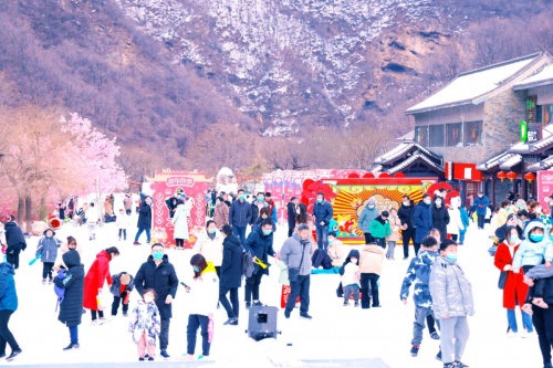 文化与旅游融合,春节与冬奥共庆。2022年春节与第24届北京冬奥会相邻,可谓锦上添花、喜上加喜,为这个新年增添了不一样的风情。焦作文旅抓住机遇,在春节期间推出冰雪游、夜游等活动,打造节日消费新引擎。在云台山景区内推出新春冰雪狂欢节系列活动,基于1万多平方米的山地户外滑雪场,为游客提供雪地摩托、滑雪道、滑雪圈等十余种戏雪项目,全天近二十场国风演艺、冰雪表演、COSPLAY轮番上演,展现了焦作对冬奥健儿的加油助威,也彰显了焦作人民对冰雪旅游的热情。