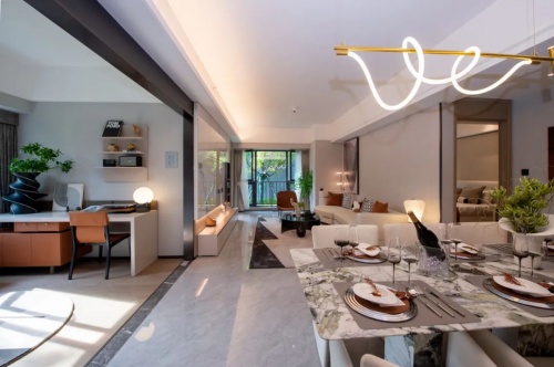 当然,作为人文轻奢居所,其在人性化精装细节上也毫不吝啬,除了豪宅标配精装上,还配有沙发背景墙、配有洗碗机、厨房凉霸、净水器等,兼具美观及实用性。
