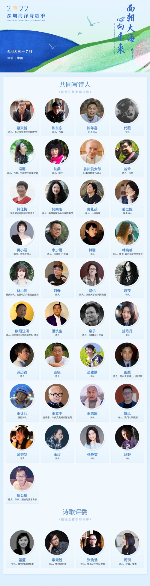 《面朝大海,心向未来》2022深圳海洋诗歌季,由深圳市文化广电旅游体育局、深圳市盐田区人民政府主办,中共深圳市盐田区委宣传部、深圳市盐田区文化广电旅游体育局承办,「为你读诗」策划执行。