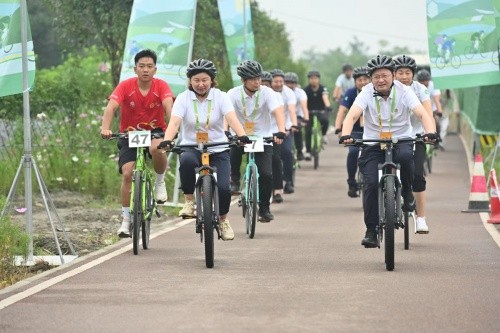 “骑游‘两河一心’,共享低碳生活”,6月24日—25日,2022中国·成都天府绿道国际自行车车迷健身节首站在温江区北林绿道拉开帷幕。本届车迷健身节由中国自行车运动协会、中共成都市委宣传部、成都市体育局、中共成都市直属机关工作委员会、温江区人民政府主办,中共成都市温江区委组织部、成都市温江区文化体育和旅游局、成都天府绿道建设投资集团有限公司承办,成都中京体育运营。围绕“强国复兴有我、发展体育运动、增强人民体质”主题,引领机关干部和市民群众参与骑行运动,切身感受成都建设践行新发展理念的公园城市示范区重要成果,提升市民群众幸福感、获得感。与此同时,也是成都全民健身成果的集中展示。