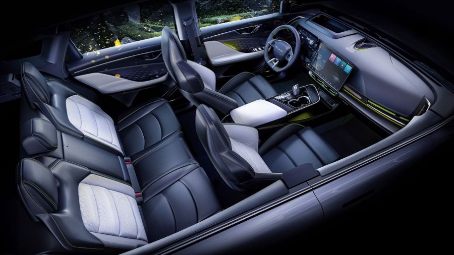 魔方的侧面线条流畅且兼具硬朗,光影车身曲面兼具光学与视觉冲击力,既丰富了车身色彩的层次变化,同时借助自然光线的反射、折射作用,使魔方在行进中可以营造出光影流转的动态变化,带来独树一帜的美感体验。车尾则采用分体式尾翼设计,其设计灵感同样来自航空动力学,不仅造型独特,同样也能在高速行驶时有效引导气流,提升魔方的行驶稳定性。