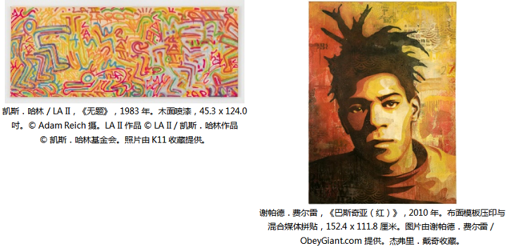 ©️ Gusmano Cesaretti、Genevieve Hanson、Adam Reich。LA II 作品 © LA II / 凯斯・哈林作品 © 凯斯・哈林基金会。图片由AIKO、BEYOND THE STREETS & Roger Gastman、DAZE、FUTURA、Haroshi、杰弗里・戴奇,纽约及洛杉矶、K11 收藏、KAWS、Lady Pink、贝瑞・麦吉、P•P•O•W,纽约、李・奎诺尼斯、安德列・萨拉华、Rammellzee艺术家遗产、黄马鼎及私人收藏提供。