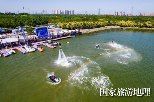 随着启航笛的鸣响,迎来了天海风俱乐部带来的水上特技表演,将现场气氛推向了高潮。