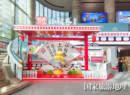 本次展会,休闲农场展厅也采用了门头疾驰列车元素,不仅代表着品牌冠名列车大动作,也代表着品牌在不断突破自我向前行驶。超高落地IP软软形象美陈、标志性的折扇视觉符号,还有54个古装美女闪耀亮相展会各个位置现场互动,声势浩大,格外吸睛。