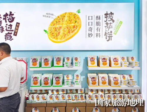 在产品开发上,从口感搭配、颜值搭配等方面考量。主要选择了咸香的肉松作为主要配料,还有香甜的芝士与绿色的蔬菜干混合洒满表层,与酥脆的饼干基底搭配,一口下去口感松脆有料,口口咸香奇妙。不管是游客还是经销商,试吃过的人都赞不绝口。