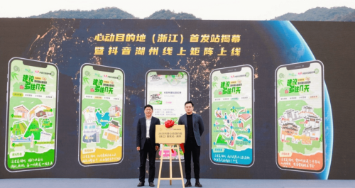 启动仪式现场,湖州市文化广电旅游局相关领导与抖音生活服务相关代表,共同揭幕心动目的地(浙江)首发站,与此同时,抖音湖州线上矩阵也随之正式上线,将通过线上短视频和内容矩阵、搜索曝光持续助力湖州文旅宣传和新消费。同时,此次活动将助力商家和达人更深度的合作,伴随湖州潮玩旅拍季的启动,广大商家与旅游达人达成双向奔赴,“牵手”潮玩之约,共同合作共赢,助力本地宣传和文旅商品消费。