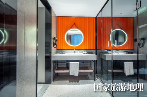 回归到产品上,自带年轻属性的3.0产品首先在视觉上就增添了更多充满活力的色块拼接与灯影效果,点缀出空间的时尚雅致,让用户从进门开始便感到眼前一亮。在多元的交互大堂或明亮舒适的自助餐厅,亦或是时尚雅致的客房空间,通过鲜艳的品牌主色调调动用户愉悦的情绪。