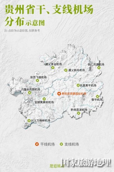 贵州干、支线机场分布示意图。(图片来源:制图/刘耘硕)