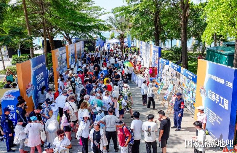 本站赛事在延续经典的基础上,将黎锦、椰雕等海南传统文化元素融入帆船主题创作,参赛家庭现场观看制作手工艺品展示。