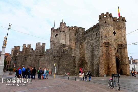 这是2014年6月1日拍摄的比利时根特市始建于公元1180年的格拉文斯丁城堡。