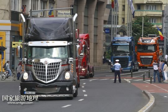 国家旅游地理 罗马尼亚布加勒斯特5月10日讯 5月9日,在罗马尼亚首都布加勒斯特,五颜六色的改装卡车浩浩荡荡巡游街头。第3届罗马尼亚改装车展于8日拉开帷幕。改装卡车和摩托车巡游是此次车展活动的重要内容。由罗马尼亚公路运输者协会和国际公路运输协会联合举办的罗马尼亚改装车展是东南欧地区规模最大的同类展览。/新华社发(佩特雷斯库摄)