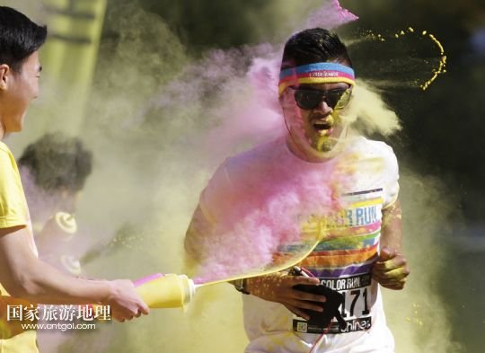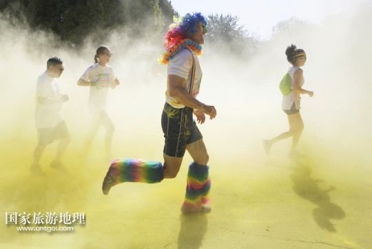 国家旅游地理 加拿大温哥华6月14日讯 6月13日, 在加拿大温哥华, 参加者在颜色粉末中奔跑。