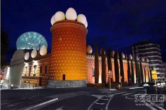 达利剧院博物馆枚红色的外墙上整齐的镶嵌着一颗颗的金色圆点,屋顶上还竖立着巨大的蛋,原来这才是真正的蛋定啊!