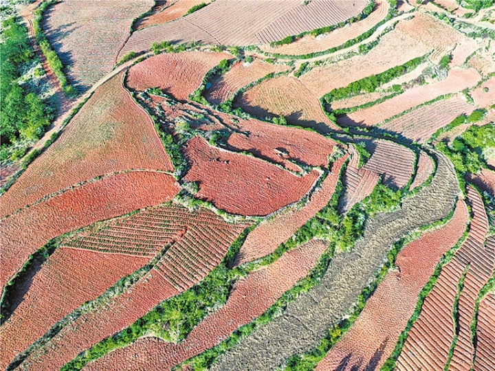 在广袤的滇东大地上,红色的土壤随处可见,尤其是当雨过天晴,阳光灿烂时,土地变得血一样红。