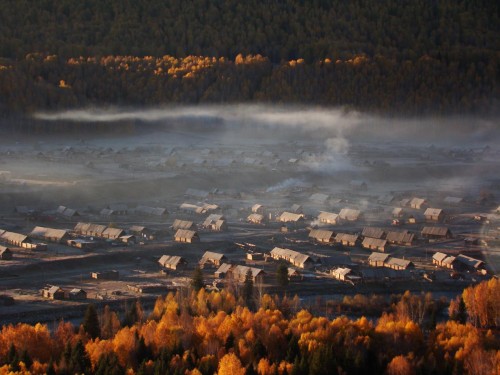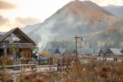 禾木村是阿勒泰市布尔津县下辖的一座村庄,喀纳斯河与禾木河在此交汇成为额尔齐斯河,村落所在便是两条河流交汇处的山间草原盆地,素有“神的自留地”之称。禾木村是图瓦人的聚居地,是现今仅存的三个图瓦人村落之一。这里的特色便是图瓦木屋,带着欧洲风情的尖顶木屋让宁静乡野多了几分童话色彩,如今当地人居住的木屋中隐匿着各色小店,吸引着往来游人探秘寻访。