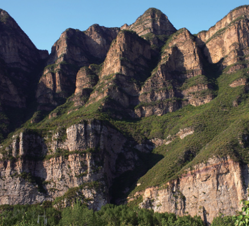 以厚厚的沉积岩层之形成往往经过了数以万年的成岩过程,沉积期间海洋的起起落落,通常在岩石中有所显示。比如,深水沉积时岩层颜色一般较浅,当抬升并暴露在潮间带时,沉积物里难免混入一些铁元素,成岩后的氧化作用便会使之成为紫红色的氧化色。在百里乡居随处抬头望望陡峭的山壁,那层层叠叠的沉积岩便告知我们些许若干百万年的地质事件。