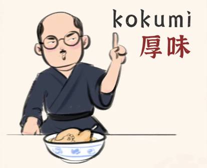 日本学者提出一个新的感官词汇:kokumi,即厚味,是描述食品感官上浓厚,饱满味感的持续及复杂性等特征,类似鸡汤带来的醇厚绵长的口感。
