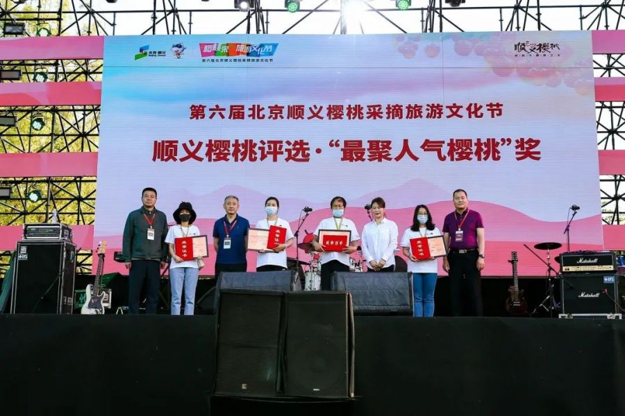顺义拥有优良的生态环境,悠久的樱桃种植历史,是北京市重要的樱桃产区。近年来,顺义区文化和旅游局借助“北京顺义樱桃采摘旅游文化节”,充分挖掘顺义樱桃绿色有机、肉厚汁多、香甜美味、口感上乘的优势,打造“顺义樱桃”品牌。而优中选优的“顺义樱桃”评选活动就显得更加激烈、难分伯仲。樱桃品鉴会现场,一盘盘鲜艳柔嫩的樱桃,如同玛瑙般圆润饱满,让人垂涎欲滴,微风拂面,果香暗动。在本届樱桃采摘旅游文化节开幕式上,13家本土樱桃园主携带即时采摘的新鲜果实,供专家、媒体、观众评委组成的专业评审团品鉴,并通过投票的方式评选出优秀示范樱桃园奖、“年度最美樱桃”奖、“最聚人气樱桃”奖、“最具口碑樱桃”奖等多类奖项。其中,双河果园获得优秀示范樱桃园奖;北京喜邦生态农业有限公司、樱桃幽谷获得2021“年度最美樱桃”奖;乾轩樱桃采摘园、顺丽鑫生态观光农业园、京北顺园果树种植合作社、北京吉祥苑采摘园获得“最聚人气樱桃”奖;顺彩新特、锦绣庄园、莲顺农业、北京人之初农业发展有限公司、益康园生态农业有限责任公司、北京彩虹庄园农业科技有限公司获得“最具口碑樱桃”奖。