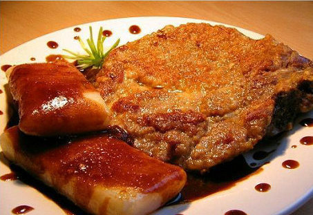 排骨年糕是上海一种经济实惠、独具风味的小吃,已有50多年历史。上海有两家著名的排骨年糕——“小常州”和“鲜得来”。“小常州”排骨年糕选用常州、无锡等地的猪脊骨肉,用酱油腌渍后,再放入用酱油、油、糖、葱姜末、酒等混合的油锅中氽,氽至色呈紫红、肉质鲜嫩、味道浓香时取出。与此同时,将松江大米煮熟后,放在石臼里用榔头反复捶打,待捶打至米已无整粒后取出,每500克切20根,每根里裹一小块已经氽过的排骨,再入酱汁油锅中煮氽,吃时,洒上五香粉,则既有排骨的浓香,又有年糕的软糯酥脆,十分可口;“鲜得来”的排骨年糕是将面粉、菱粉、五香粉、鸡蛋放在一起搅成浸裹在排骨表面,放入油中氽熟。这种排骨色泽金黄,表面酥脆,肉质鲜嫩。与此同时,将松江大米与红酱油、排骨一起加上甜面酱,浇上辣椒酱即可。入口糯中发香,略有甜辣味,鲜嫩适口。上海市的曙光饮食店的“小常州”排骨年糕、“鲜得来”点心店作的排骨年糕最具特色。