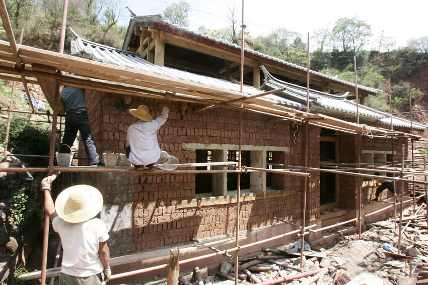 村里的千年盐井上正在修建保护建筑