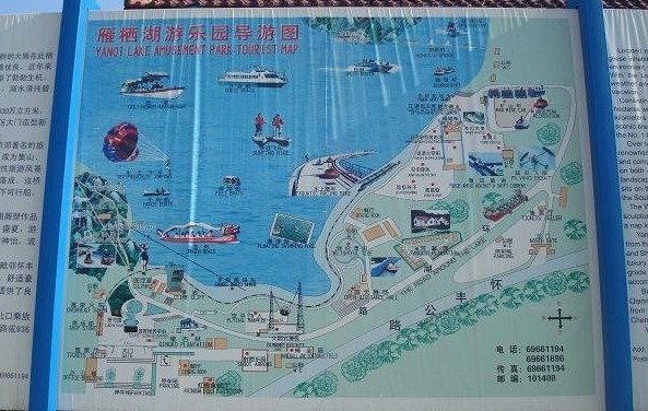 雁栖湖游乐园环境优美,景色宜人,是京郊著名得体育健身、休闲度假的胜地。游乐园内各种娱乐设施齐全,现有水上、陆地项目40余种,可供不同年龄的游客选择。其中水上飞伞、水上跑车、水上自架摩托、水上飞降、水幕电影、火箭式蹦极、空中飞人、激流勇进、攀岩、射箭、戏水池等健身娱乐项目深受广大游客的喜爱。游客可乘船游湖,纵横千米湖面,或披波斩浪,尽情领略搏击风浪的情趣。游客还可登临望湖亭,领略湖光山色,尽情回归大自然的惬意。